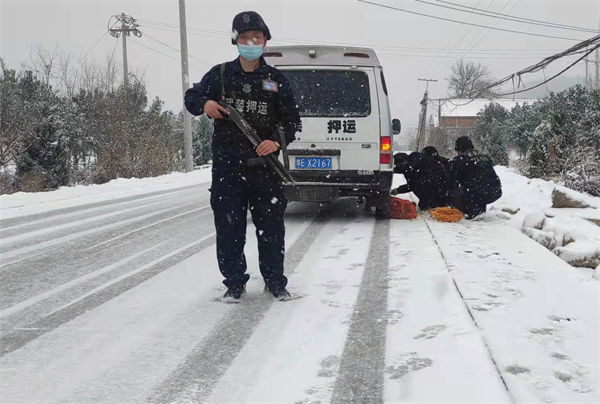 清晨,為確??钕錅?zhǔn)時(shí)送到各營(yíng)業(yè)網(wǎng)點(diǎn),他們冒雪按時(shí)出發(fā)。滿天的飛雪,昏暗街區(qū),濕滑的道路,讓押運(yùn)車(chē)輛行進(jìn)艱難,各車(chē)組按照雨雪天工作預(yù)案要求認(rèn)真執(zhí)行勤務(wù)。時(shí)值中午,雪越下越大,東姚、原康、桂林、橫水線路路面已經(jīng)積雪嚴(yán)重。橫水線路在行駛至采桑路段時(shí),車(chē)長(zhǎng)李增華看到積雪的路面,果斷將車(chē)輛停下,按照預(yù)案加裝防滑鏈。車(chē)組成員在他的指揮下,快速安裝好輪胎防滑鏈繼續(xù)前行。東姚線路和桂林線路也在押運(yùn)途中適時(shí)將車(chē)輛加裝好防滑鏈,確保車(chē)輛安全運(yùn)行。