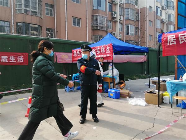 2022年1月11日,整個(gè)安陽按下了暫停鍵,公交停運(yùn),學(xué)校停課,商鋪酒店關(guān)門歇業(yè),然而抗擊疫情的腳步一刻也不能停頓。人防二大隊(duì)根據(jù)北關(guān)區(qū)疫情防控工作需要,在接到公司指令后,在疫情防控形勢(shì)異常嚴(yán)峻、各崗位人員異常緊張的情況下,與兄弟大隊(duì)人防四大隊(duì)聯(lián)手,在副大隊(duì)長張海林的帶領(lǐng)下,第一時(shí)間抽調(diào)常文廣、李艷軍等10名保安員,前往盤庚中社區(qū),承擔(dān)了核酸檢測(cè)點(diǎn)的秩序維護(hù)任務(wù)。