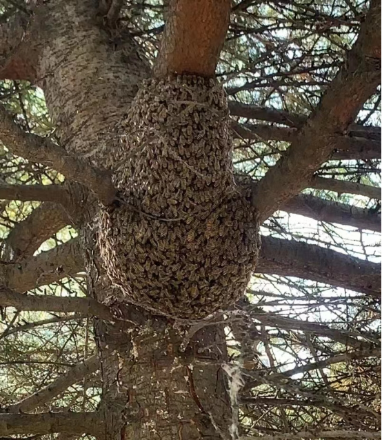 4月21日上午,書香雅居小區(qū)的業(yè)主在集中核酸檢測時,突然發(fā)現(xiàn)有多個馬蜂在人群上飛舞,使平靜的居民生活起了波瀾和不安。鼎誠物業(yè)公司書香雅居物業(yè)服務(wù)項目經(jīng)理蘇俊強得知后,一邊先穩(wěn)定居民按時做好核酸檢測,一邊派人查找馬蜂的來源。經(jīng)過多方尋找,在草坪塔松樹上,發(fā)現(xiàn)一個巨大的馬蜂窩,上面布滿了密密麻麻的馬蜂。