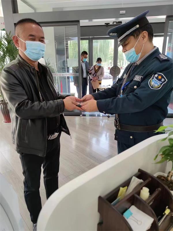 2022年10月17日下午15時(shí)左右,人防四大隊(duì)派駐工商銀行永明路支行執(zhí)勤隊(duì)員彭建新在日常巡視ATM 機(jī)的過程中,發(fā)現(xiàn)客戶取款后遺忘手機(jī)一部,馬上交與銀行值班領(lǐng)導(dǎo)。