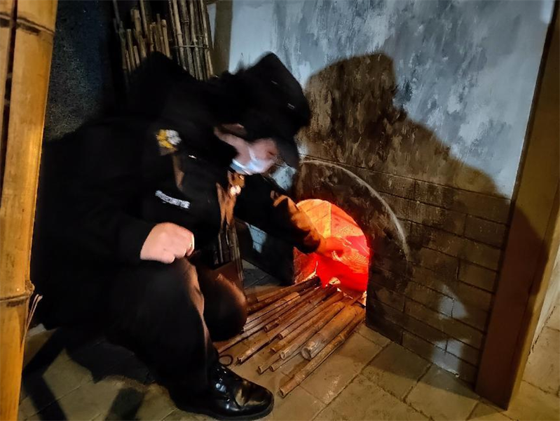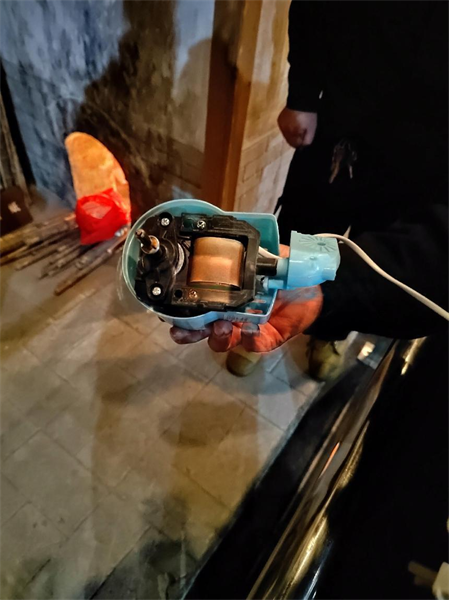 2023年1月6號中午12時10分,特保大隊派駐中國文字博物館女隊員袁仁杰在二樓南展廳巡邏時,聞見一股燒焦皮子的味道,出于安全警覺性,她開始多方檢查,最終在臺階下找到源頭,原來是布景風(fēng)機線路老化短路造成。于是,袁仁杰第一時間上報了博物館安保部,并聯(lián)系電工人員進行維修更換。