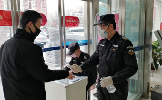 疫情期間,為防止病毒擴散傳染,浦發(fā)銀行保安班保安員放棄節(jié)假日休息,滿員滿點上崗。隊員層層動員、壓實責任,將學習到的各種防控疫情知識落實到工作中,確保自身和客戶的安全。首先隊員做好自我保護,按照要求,上崗戴口罩,手套。其次,他們堅持對進出銀行的每位員工,以及辦理業(yè)務的每位客戶量體溫、做登記、進行個人消毒、詢問其是否去過疫區(qū)。
