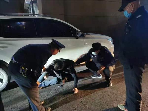 3月29日21:30許,駐龍安區(qū)巡防隊(duì)郭國峰、崔志濤、肖鵬、畢治華等隊(duì)員巡邏至梅東路與龍圖街西北角處時,借著巡邏車的燈光發(fā)現(xiàn)一輛轎車旁躺著一個人。于是,他們趕忙過去查看,來到近前,發(fā)現(xiàn)一名男子身上散發(fā)出很濃的酒氣。由于該路段沒有路燈,能見度極差,不易被發(fā)現(xiàn),人來車往,極易發(fā)生事故。因該男子已經(jīng)神智不清,無法給他正常交流,崔志濤隨撥打了110,隊(duì)員們一邊對該男子進(jìn)行保護(hù),防止發(fā)生意外,一邊勸離圍觀群眾,防止交通堵塞。