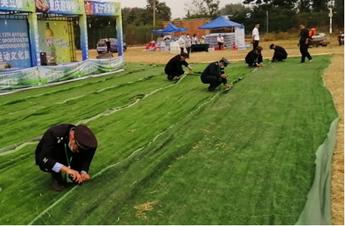 被抽調(diào)出的執(zhí)勤人員分工合作,有的負(fù)責(zé)鋪平草坪地毯,有的負(fù)責(zé)將地毯用訂書釘釘在一起,大家干得熱火朝天。經(jīng)過2個(gè)多小時(shí)奮戰(zhàn),13500平方米凌亂的草坪地毯再次整整齊齊鋪在了主會場。客戶看到后,直夸我們的保安員真能干。