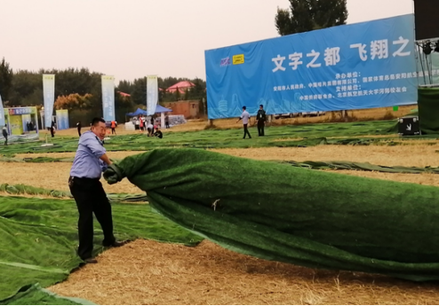 “把這邊拉整齊。”“我這里已經(jīng)鋪平了。”9月30日下午,第十二屆安陽航空運(yùn)動文化旅游節(jié)主會場,在執(zhí)勤的公司保安員應(yīng)客戶要求忙著整理會場上草坪地毯。