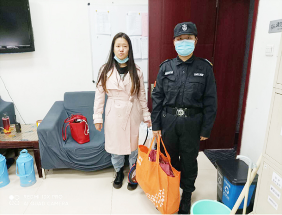 在游客發(fā)現(xiàn)丟失了物品,到安檢處尋找時,特保隊員將其帶到安保部認(rèn)領(lǐng)失物。安保部工作人員確認(rèn)無誤后,將包歸還給游客,游客非常感謝安陽保安拾金不昧的風(fēng)格高尚。