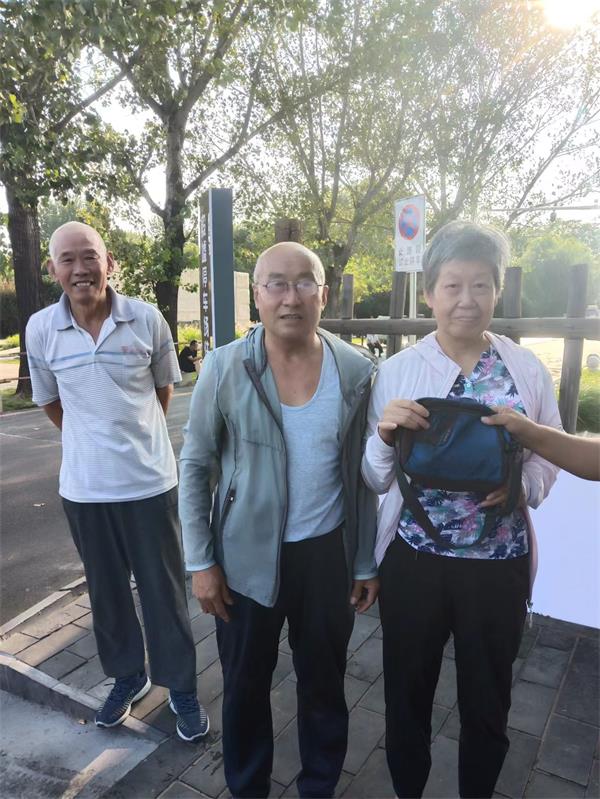 9月8日下午16:50分許,該大隊六中隊保安員周來娣、朱志芳在殷墟路和廣場南路路口執(zhí)勤時,有兩男一女三位老年人向她們走來,周來娣迎上前禮貌地問:“請問老同志,有什么事需要幫助嗎?”三人說:“在廣場南路發(fā)現(xiàn)路邊有一個包,怕失主找包著急,請你們幫忙尋找失主?!敝軄礞访φf:“先替失主感謝你們拾金不昧的精神。”接著,在眾人的見證下,隊員查看后,發(fā)現(xiàn)包里有身份證、手機、錢包、銀行卡等物。于是,她們用電喇叭錄好招領(lǐng)啟示,在警亭滾動播放。不一會兒,先后有三個人前來認(rèn)領(lǐng)。慎重起見,班長郭國峰讓來人說出包的特征和包內(nèi)物品,但都對不上號。后來有一位約70歲的老翁領(lǐng)一小女孩前來認(rèn)領(lǐng),經(jīng)過確認(rèn),確定是真正的失主。這時,撿包者正好路過警亭,周來娣將撿包者告知失主。失主很感動,趕忙買來飲品表示感謝。