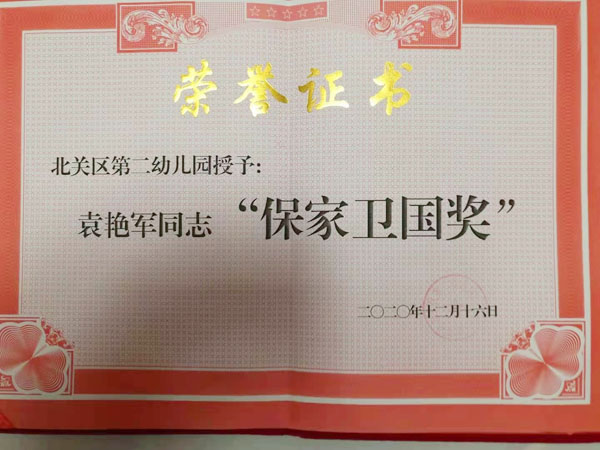 在北關(guān)區(qū)第二幼兒園園慶暨2020年表彰會(huì)上,兩名同志被園方授予“保家衛(wèi)國(guó)”榮譽(yù)稱(chēng)號(hào)。二人表示,在新的一年里,一定不辜負(fù)領(lǐng)導(dǎo)的厚愛(ài)與期望,不忘宗旨使命,認(rèn)真履行職責(zé),為構(gòu)建平安幼兒園和抗擊疫情貢獻(xiàn)自己的力量。