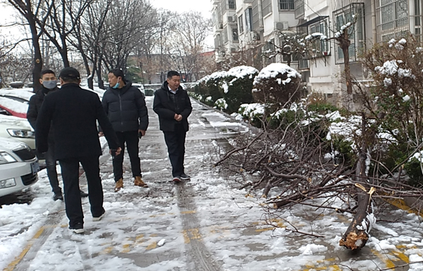 當(dāng)日一大早,申春林就帶領(lǐng)物業(yè)公司辦公室、應(yīng)急辦的人員深入到各項目單位,查看雪后災(zāi)情。在致中苑小區(qū)、電業(yè)局頤欣園小區(qū),申春林看到有樹枝被雪壓斷,他指出要及時查清受損情況,清理積雪現(xiàn)場,確保居民正常出行。在蔬菜基地,有兩個大棚遭被雪壓塌陷,有不同程度損壞,但均無人員傷亡事故。目前鼎誠物業(yè)員工正在積極修復(fù)大棚,減少損失。