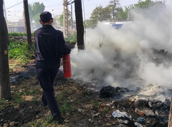 5月5日下午2點30分,人防四大隊電廠路街道巡防隊隊員高麗慧、袁利民在鐵路沿線巡邏,發(fā)現(xiàn)梁邵村附近的鐵路邊濃煙滾滾,有刺鼻的氣味,兩人立即開車前往現(xiàn)場了解情況。到達現(xiàn)場后,他們發(fā)現(xiàn)鐵路邊的荒草樹等雜物正在燃燒,現(xiàn)場火勢不太大,沒有人員受傷。他們隨即與鐵路工作人員聯(lián)系,并立即利用鐵鍬、滅火器等工具開展滅火行動,經(jīng)過他們和鐵路員工的共同努力,火勢已經(jīng)基本得到控制,火情基本被消滅,他們的行為受到了轄區(qū)領(lǐng)導(dǎo)的一致表揚。