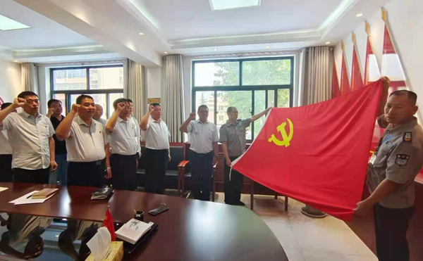 6月28日上午,為慶祝建黨100周年,扎實(shí)推進(jìn)黨史學(xué)習(xí)教育,第五黨支部全體黨員在公司二樓黨建會(huì)議室開展“重溫入黨誓詞 慶祝建黨百年”活動(dòng)。與會(huì)黨員、預(yù)備黨員面向黨旗莊嚴(yán)宣誓。