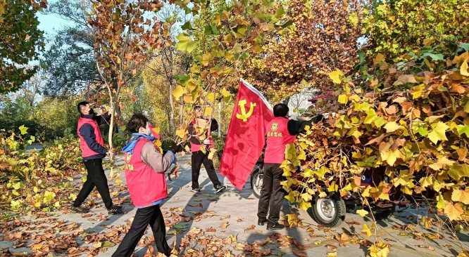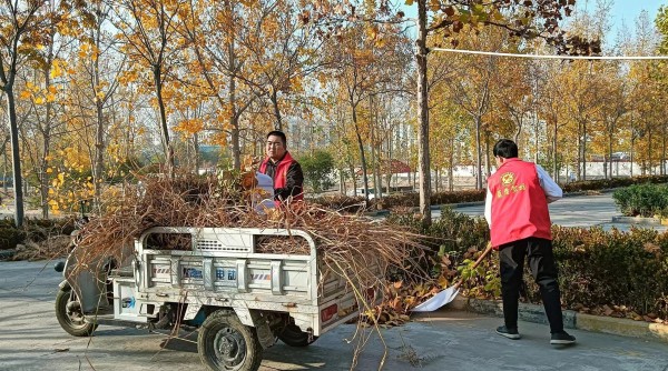 上午8點15分,黨員干部身著志愿者紅馬甲,手擎黨旗來到訓(xùn)練場,大家開始分頭行動,有的騎三輪運送樹枝,有的往車上擺放,大家干的熱火朝天,石榴樹滿樹枝都是刺,楊樹下來的枝干非常碩大,大家或小心翼翼或用盡全力,進(jìn)過兩個半小時的努力,將小車訓(xùn)練場上樹枝清理完畢。下午2點15分,大家又重新集合,開始訓(xùn)練場樹葉清理工作。直到下午5點,大家終于將訓(xùn)練場整修一新。